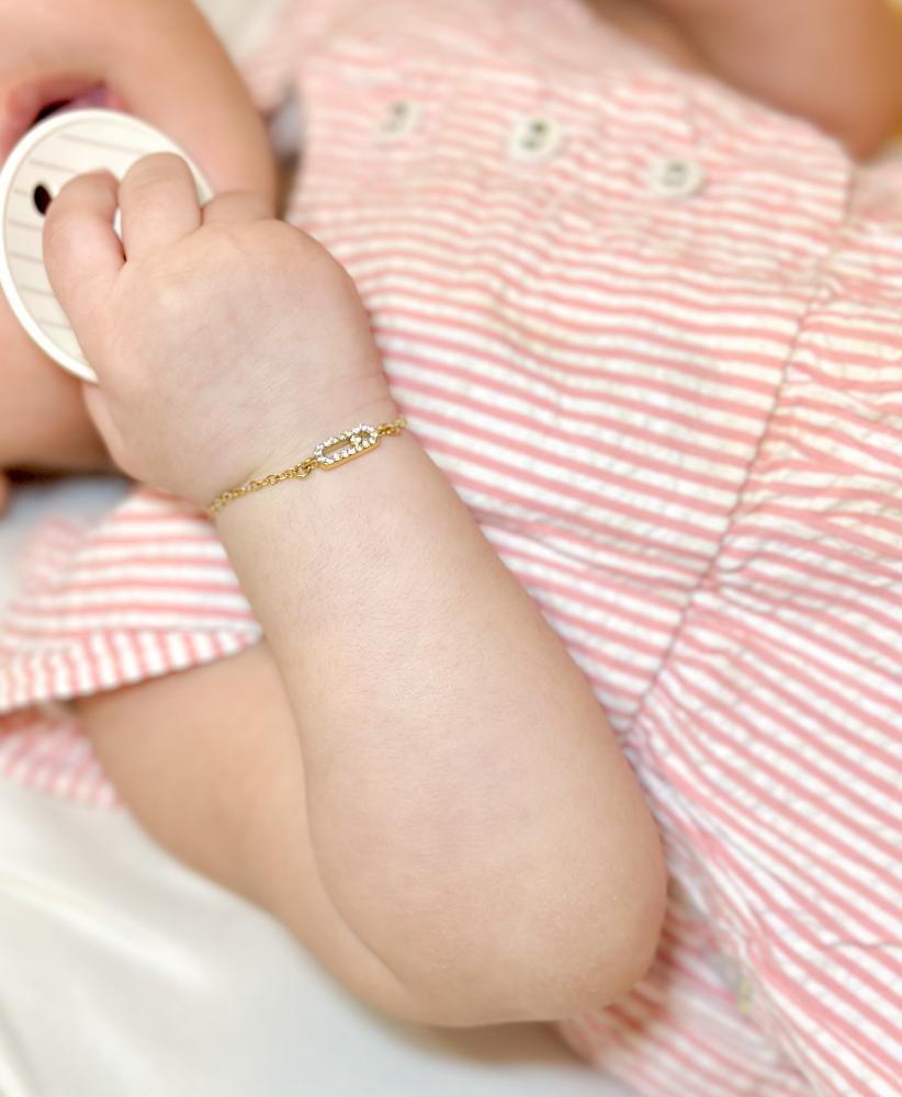 كل لحظة مع مولودك تستحق أن تكون مميزة، وهذا السوار يجسد ذلك. بتصميمه المستوحى من ميسيكا، هذا السوار ليس مجرد قطعة حلي، بل هو تعبير عن الحب والفرح الذي يملأ حياتك. سواء اخترتِ اللون الذهبي الدافئ أو اللون الفضي اللامع، سيظل السوار ذكرى جميلة ترافق طفلك منذ أيامه الأولى.